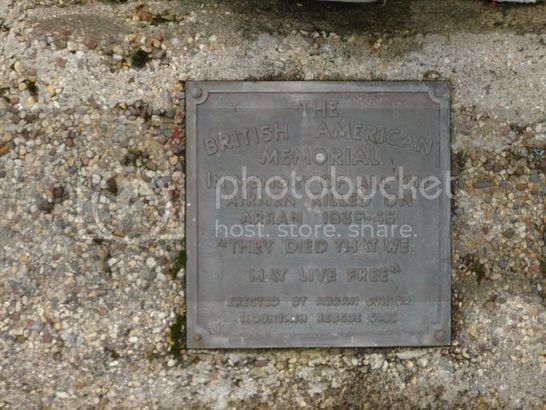 THE/BRITISH AMERICAN/MEMORIAL/IN MEMORY OF ALL THE/AIRMEN KILLED ON/ARRAN 1939-45/"THEY DIED THAT WE/MAY LIVE FREE"/ERECTED BY ARRAN JUNIOR/MOUNTAIN RESCUE CLUB