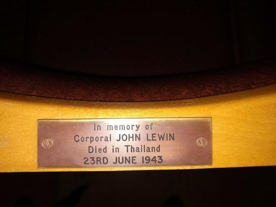 In memory of/ Corporal John lewin/ Died in Thailand/ 23RD JUNE 1943