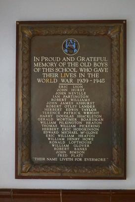 In Proud and Grateful/ Memory of the Old Boys/ of this School who Gave/ their Lives in the/ World War 1939-1945/ Names/ Their Name Liveth for Evermore