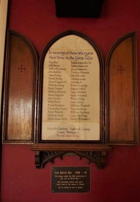 ROLL OF/ HONOUR/ 1914 - 1918/ In memory of those who gave/ their lives in the Great War/ (Names)/ 1939 - 1945/ (Names)/ "We will remember them"