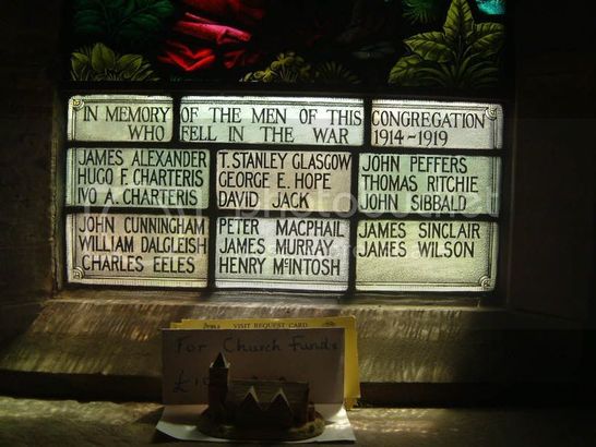 IN MEMORY OF THE MEN OF THIS CONGREGATION/ WHO FELL IN THE WAR 1914-1919/ (17 names in 3 columns)