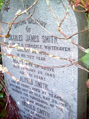 ... ALFRED SMITH/SON OF THE ABOVE AGED 27 YEARS/WHO WAS LOST AT SEA MAY 29, 1917/THROUGH THE TORPEDOEING OF THE/SS "CLAN MURRAY"