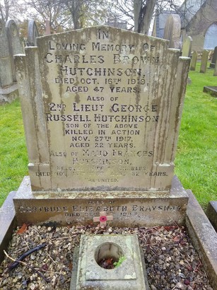 / ALSO OF/ 2ND LIEUT. GEORGE/ RUSSELL HUTCHINSON/ SON OF THE ABOVE/ KILLED IN ACTION/ NOV. 27TH 1917 AGED 22 YEARS/