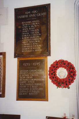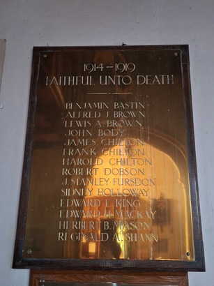 Benjamin Bastin/ Alfred J Brown/ Lewis A Brown/ John Body/ James Chilton/ Frank Chilton/ Harold Chilton/ Robert Dobson/ J Stanley Fursdon/ Sidney Holloway/ Edward L King/ Edward H MacKay/ Herbert B Mason/ Reginald A Shann