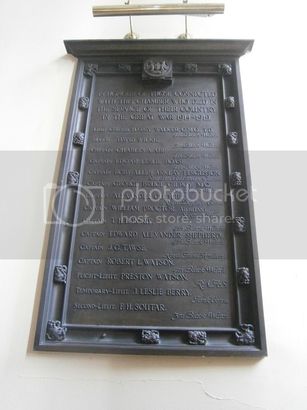 IN HONOUR OF THOSE CONNECTED/WITH THIS CHAMBER WHO DIED/IN THE SERVICE OF THEIE COUNTRY/IN THE GREAT WAR 1914-19/[names]