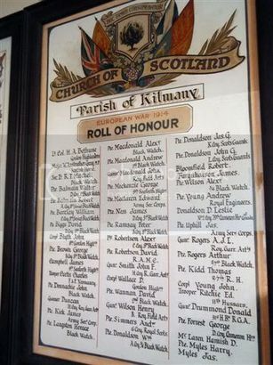 CHURCH OF SCOTLAND/Parish of Kilmany/EUROPEAN WAR 1914/ROLL OF HONOUR/[48 names in 3 columns]