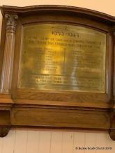 1939-1945/TO THE GLORY OF GOD AND IN LOVING MEMORY OF/THE MEN OF THIS CHURCH WHO DIED IN THE WAR/[18 names in 2 columns]/GREATER LOVE HATH NO MAN THAN THIS/THAT A MAN LAY DOWN HIS LIFE FOR HIS FRIENDS