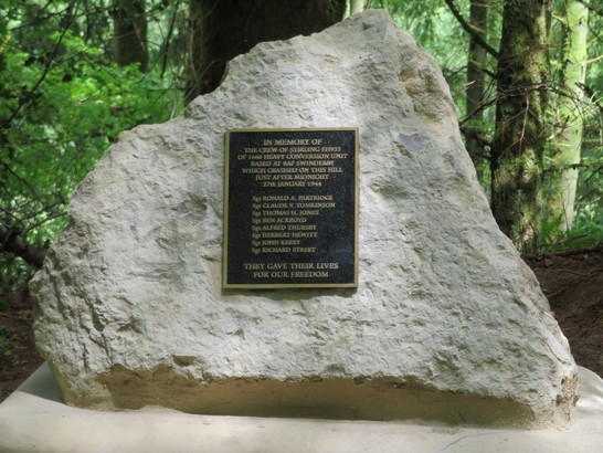 In memory of the crew of Stirling EH933 of 1660 Heavy Conversion Unit based at RAF Swinderby which crashed on this hill just after midnight 27th January 1944 Sgt Ronald A. Partridge Sgt Claude V. Tomkinson Sgt Thomas H. Jones Sgt Ben Ackroyd Sgt Alfred Thursby Sgt Herbert Hewitt Sgt John Kerry Sgt Richard Street They gave their lives for our freedom