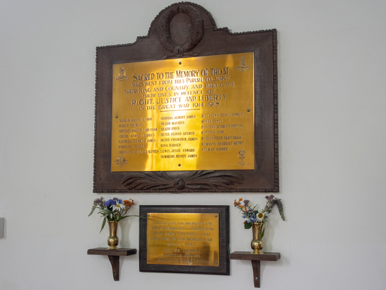East tytherton WW2 plaque, showing in situ below WW1 plaque. - Taken by Mike Guttridge 06 Aug 2021