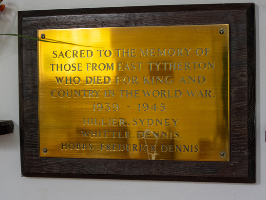 SACRED TO THE MEMORY OF/THOSE FROM EAST TYTHERTON/WHO DIED FOR KING AND/COUNTRY IN THE WORLD WAR./1939 - 1945/(NAMES)