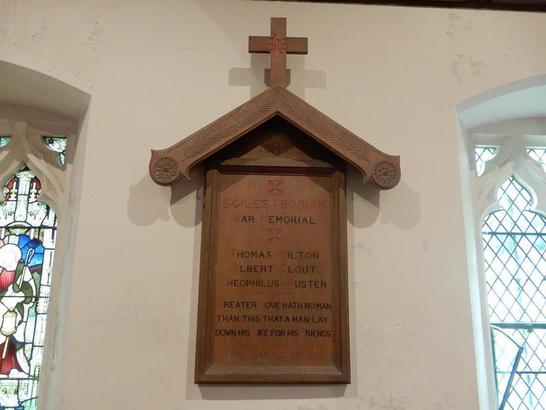 ST GILES - BODIAM/ WAR MEMORIAL./ (Names)/ GREATER LOVE HATH NO MAN/ THAN THIS, THAT A MAN LAY/ DOWN HIS LIFE FOR HIS FRIENDS/ "JESU MERCY"