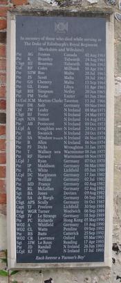 n memory of those who died while serving in/ The Duke of Edinburgh's Royal Regiment/ (Berkshire and Wiltshire)/ (Names)/ Each forever a 'Farmers Boy'