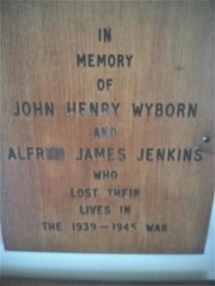 IN/ MEMORY/ OF/ JOHN HENRY WYBORN/ AND/ ALFRYN JAMES JENKINS/ WHO/ LOST THEIR/ LIVES IN/ THE 1939-1945 WAR