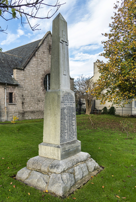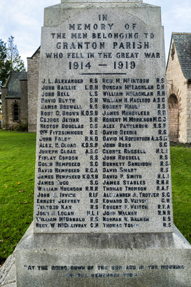 On the Pedestal-IN/MEMORY OF/THE MEN BELONGING TO/GRANTON PARISH/WHO FELL IN THE GREAT WAR/1914-1919/[names in 2 columns] On the Top Base- "AT THE GOING DOWN OF THE SUN AND IN THE MORNING/WE WILL REMEMBER THEM"