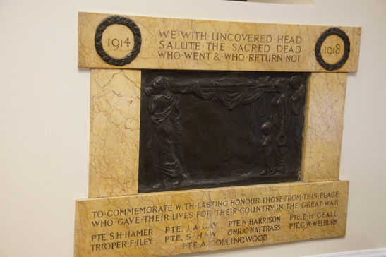 Top of the tablet-WE WITH UNCOVERED HEAD/SALUTE THE SACRED DEAD/WHO WENT & WHO RETURN NOT; Bottom of the tablet-TO COMMEMORATE WITH LASTING HONOUR THOSE FROM THIS PLACE/WHO GAVE THEIR LIVES FOR THEIR COUNTRY IN THE GREAT WAR/[names in 4 columns]