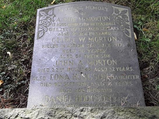 [...]/ GEORGE W. MORTON/ KILLED IN ACTION 31ST JULY 1917/ AGED 36 YEARS/ [...]
