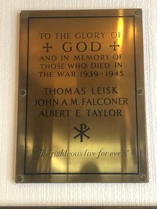 TO THE GLORY OF/+GOD+/AND IN MEMORY OF/THOSE WHO DIED IN/THE WAR 1939-1945/[names]/[pax symbol]/The righteous live for ever