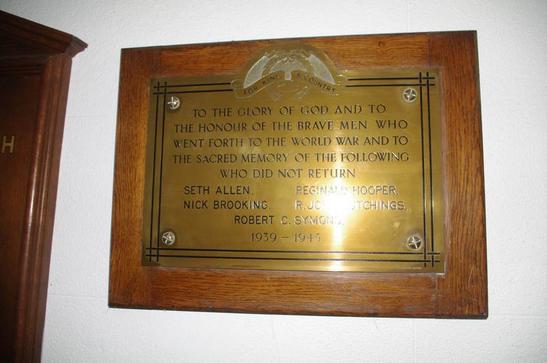 FOR KING & COUNTRY/ TO THE GLORY OF GOD AND TO/ THE HONOUR OF THE BRAVE MEN WHO/ WENT FORTH TO THE WORLD WAR AND TO/ THE SACRED MEMORY OF THE FOLLOWING/ WHO DID NOT RETURN/ (Names)/ 1939 - 1945