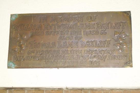 also of/ Thomas Lane Bayliff/ 6th Madras Native Infantry/killed at Allahabad June 6th 1857 Aged 17/sons of the above
