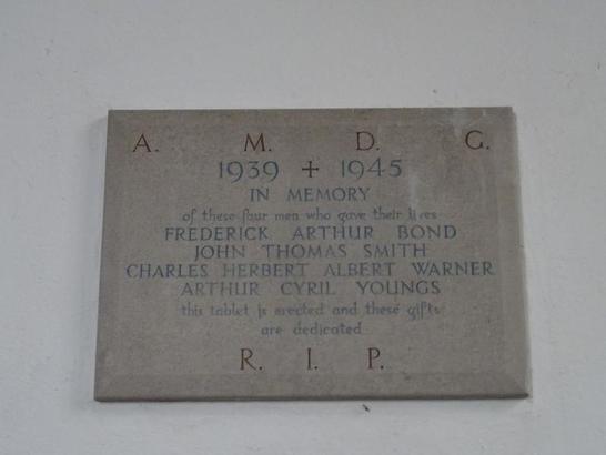 A M D G/1939 +1945/IN MEMORY/of these four men who gave their lives/[names]/this tablet is erected and these gifts/are dedicated/R.I.P.