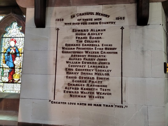 1939 1945 IN GRATEFUL MEMORY OF THESE MEN WHO DIED FOR THEIR COUNTRY "GREATER LOVE HATH NO MAN THAN THIS."