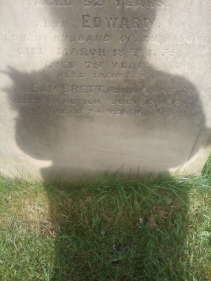 ..../ALSO THEIR SON/CORPORAL SAM BRETT, ROYAL FLYING CORPS/KILLED IN ACTION JULY 13TH 1917/AGED 24 YEARS
