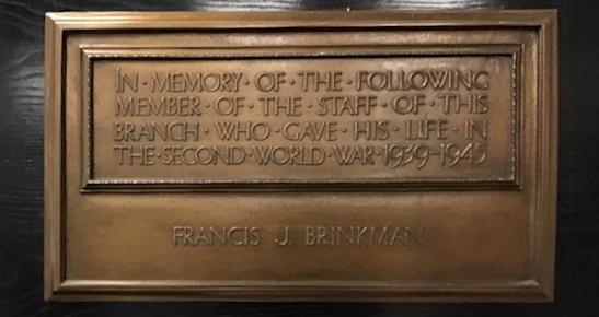 IN MEMORY OF THE FOLLOWING/ MEMBER OF THE STAFF OF THIS/ BRANCH WHO GAVE HIS LIFE IN /THE SECOND WORLD WAR 1939-1945 /(name)