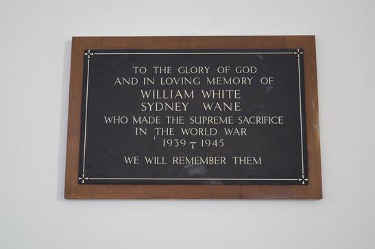 To the Glory of God/ and in loving memory of/ (Names) / who made the supreme sacrifice/ in the World War/ 1939 - 1945 / We will remember them