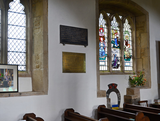 Lieutenant George Barrett plaque in context lower centre - Taken by ©2025 Colin Murray 26 Apr 2025
