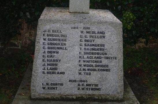 LEST WE FORGET/ 1914 - 1918/ (22 names)/ 1939 - 1945/ (4 names)