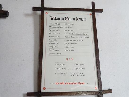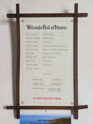 Welcombe Roll of Honour / (10 NAMES) / R.I.P / (3 NAMES) / we will remember them.