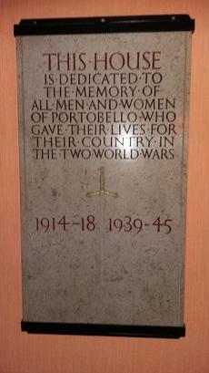 THIS HOUSE/IS DEDICATED TO/THE MEMORY OF/ALL MEN AND WOMEN/OF PORTOBELLO WHO/GAVE THEIR LIVES FOR/THEIR COUNTRY IN/THE TWO WORLD WARS/1914-18 1939-45