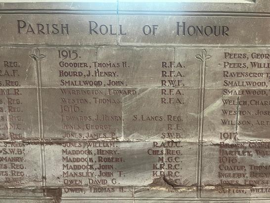 PARISH ROLL OF HONOUR 1914 1915 1916 1917 1918