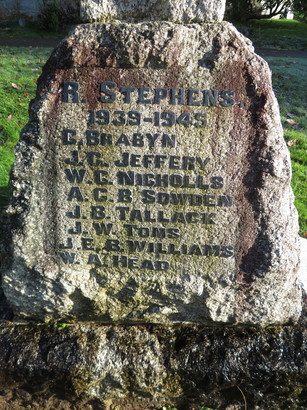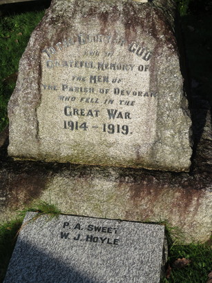 TO THE GLORY OF GOD/ AND IN/ GRATEFUL MEMORY OF/ THE MEN OF/ THE PARISH OF DEVORAN/ WHO FELL IN THE/ GREAT WAR/ 1914 - 1919/ (17 names)/1939-1945/[8 WW2 names]