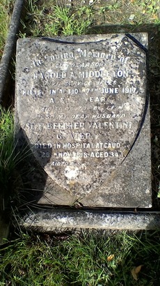 In loving memory of Private George Alfred Wood, 1st Essex Regiment who fell fighting for his country at Gallipoli Dardanelles 6 August 1915 aged 26 In loving memory of Harold A Middleton, Civil Service Rifles, Killed in Action 7 June 1917 Laid to rest in Belgium Age ? In loving memory of Serg Beecher Valentine Goater, Died in Hospital at Caudry Laid to rest in Belgium? 28 November 1918 aged 34