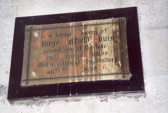 IN LOVING MEMORY OF/ GEORGE BELFIELD LOUIS/ SECOND SON OF THE LATE/ REVD GEORGE LAMBE/ KILLED IN ACTION AT KRUYERSDORP.