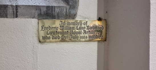 Palque 1 In memory of / William Albert Birdwood / Midshipman Royal Navy / who died 17th July 1883 aged 17 Plaque 2 In memory of / Fredric William Lane Birdwood / Lieutenant Royal Artillery / who dies 23rd January 1884 aged 22
