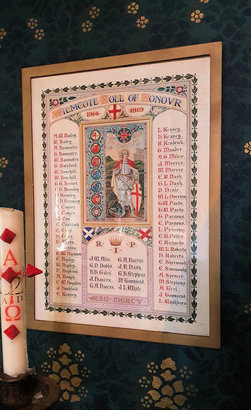 WILMCOTE ROLL OF HONOUR / 1914 - 1919 / (Names served) / R.I.P / (Names died) / JESU MERCY //