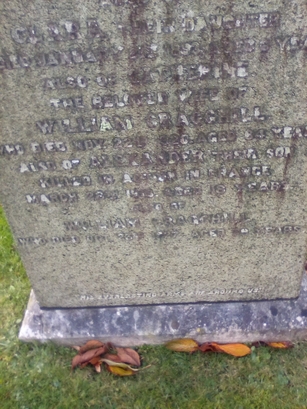 IN LOVING MEMORY OF/ELLEN/THE BELOVED WIFE OF/WILLIAM CRAGGHILL/OF HELMSIDE NATLAND/ ...../ALSO OF ALEXANDER THEIR SON/KILLED IN ACTION IN FRANCE/MARCH 28TH 1918/AGED 18 YEARS/...