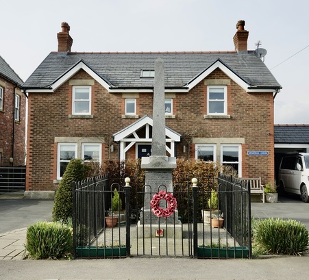 THIS MEMORIAL WAS/ERECTED BY NATEBY/PARISHIONERS AND FRIENDS/IN HONOUR OF THE MEN/OF THIS PARISH WHO FELL/WHILE SERVING THEIR/COUNTRY IN THE GREAT WAR/1914-1918/(47 names of whom 7 fell)/THE SITE WAS GIVEN BY/MR & MRS NORRIS BRETHERTON/OF RUNSHAW HALL, CHORLEY/TO NATEBY PARISH COUNCIL