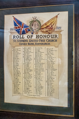 1914 Flags 1919 Roll of Honour St. Stephen's United Free Church Comely Bank, Edinburgh.