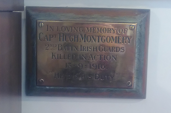 In loving memory of Capt Hugh Montgomery 2nd Battn Irish Guards Killed in action 13 - 9 - 1916 "He did his duty"