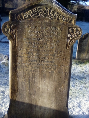 IN LOVING MEMORY/OF/JOSEPH GASKARTH/....../AND GRACE HIS WIFE/.../ALSO THE SONS OF THE ABOVE/JAMES, KILLED IN FRANCE/APRIL 28TH 1917, AGED 26 YEARS/...