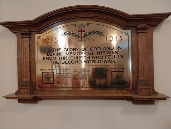 1939 1945/TO THE GLORY OF GOD AND IN/LOVNG MEMORY OF THE MEN/FROM THIS CHURCH WHO FELL IN/THE SECOND WORLD WAR/[names]