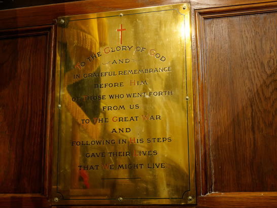 TO THE GLORY OF GOD/AND/IN GRATEFUL REMEMBRANCE/BEFORE HIM/OF THOSE WHO WENT FORTH/FROM US/TO THE GREAT WAR/AND/FOLLOWING IN HIS STEPS/GAVE THEIR LIVES/THAT WE MIGHT LIVE.