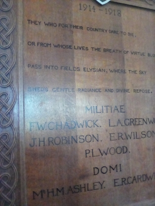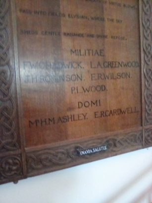 Militae- F W CHADWICK L A GREENWOOD/ J H ROBINSON E R WILSON/ P L WOOD; Domi- Mr H M Ashley E R CARDWELL