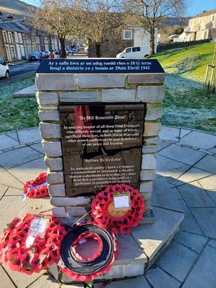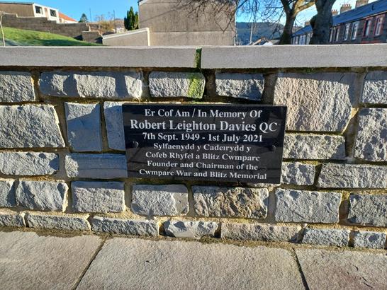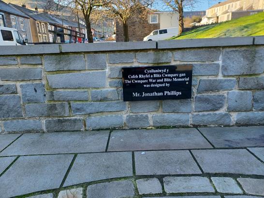 Plaque dedicated to the chairman/founder of Cwmparc war and blitz memorial - Taken by Rhiannon Seymour 17 Jan 2023