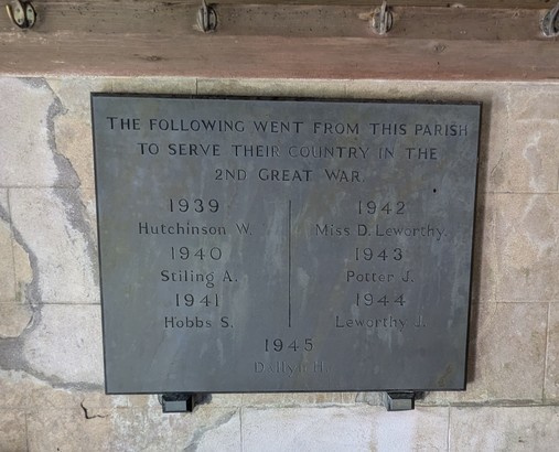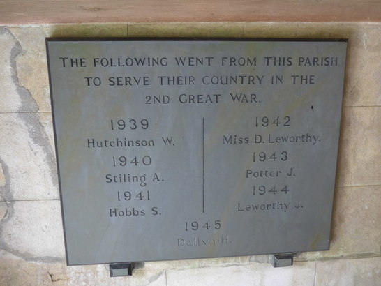 THE FOLLOWING WENT FROM THIS PARISH / TO SERVE THEIR COUNTRY IN THE / 2ND GREAT WAR / (7 NAMES)