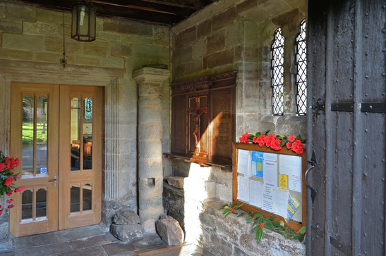 St Wystan's Church WW1 and WW2 Roll of Honour board in context in the entrance porch - Taken by ©2025 Colin Murray 23 Nov 2025