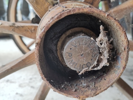 Bolt on a wheel of the bier showing the maker's name (Vigers, Pimlico) - Taken by Natalie Jennings 12 Jan 2023